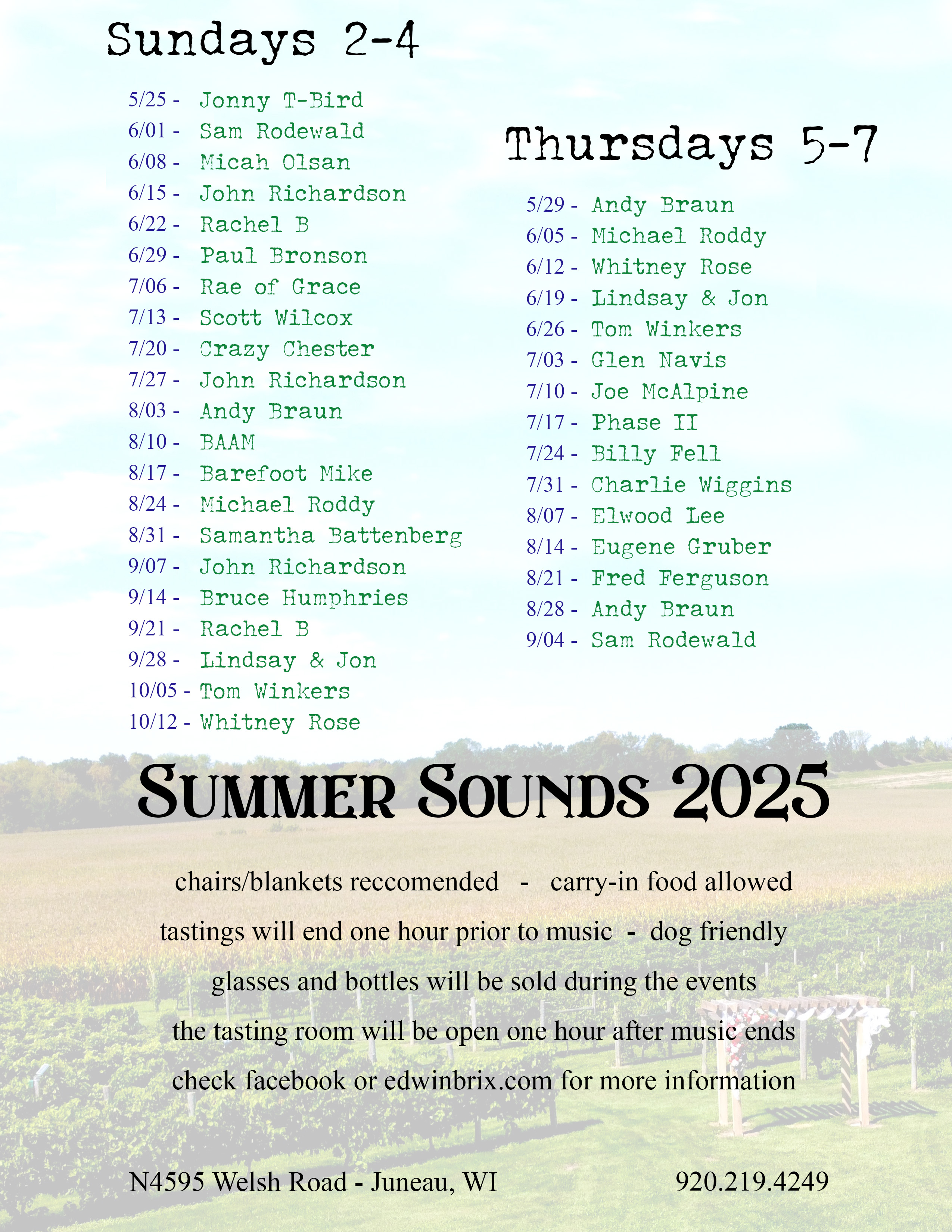 Our Summer Sounds Series Returns for another year. Please see the lineup and information below.